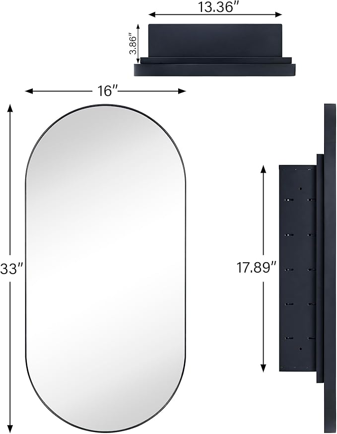 The EGHOME Matte Black Oval Recessed Bathroom Medicine Cabinet is more than just a functional piece; it's a statement of style. Whether you're renovating your bathroom or simply looking to update its look, this cabinet offers the perfect combination of elegance, quality, and practicality. Get ready to transform your bathroom into a space of luxury and convenience with this exquisite cabinet.